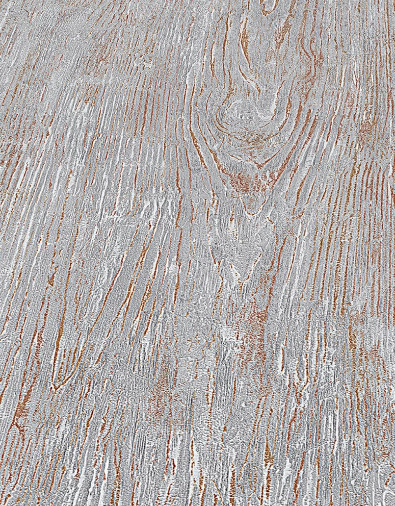 Elegancka tapeta z motywem deski w odcieniu szarości z elementami lśniącej miedzi i złota.
