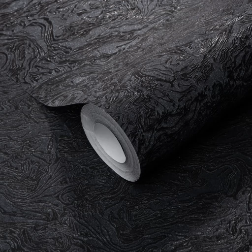 Elegancka tapeta z motywem struktury w odcieniu czerni z połyskiem.