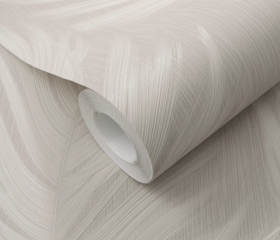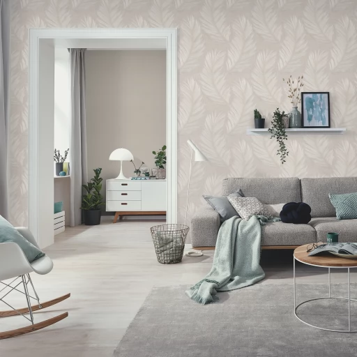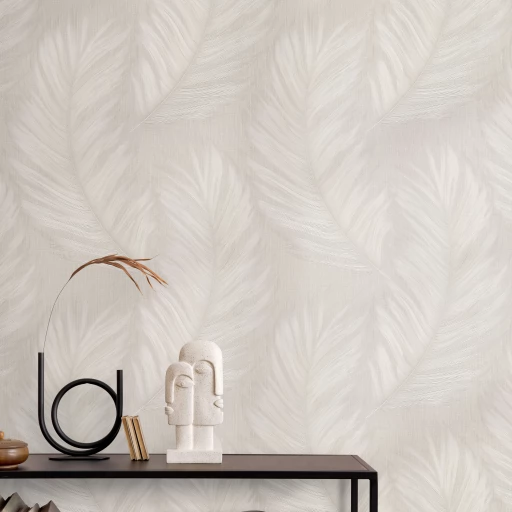Elegancka tapeta z motywem piór w odcieniu beżu.