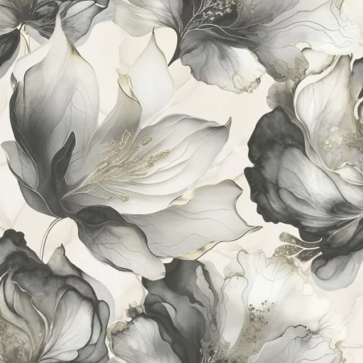 Wysokiej jakości papierowa tapeta francuskiej fabryki UGEPA. Elegancki motyw kwiatów w odcieniach szarości ze złotymi dodatkami.