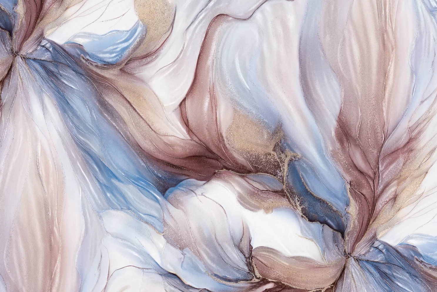 Wysokiej jakości winylowa, zmywalna tapeta. Wzór przedstawiający efektowne duże kwiaty. Struktura tapety odzwierciedla ułożenie wzoru.