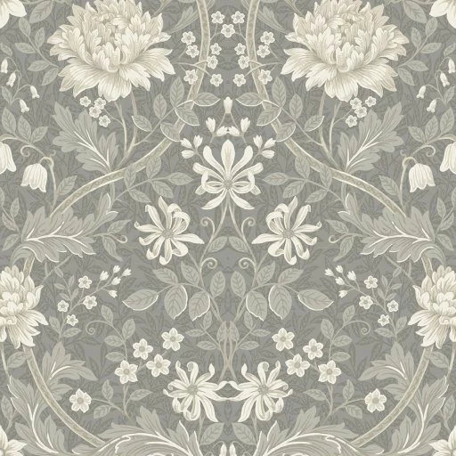 Ekskluzywna tapeta inspirowana XIX wiecznym wzornictwem Wielkiej Brytanii. Cechuje się gładkim matowym wykończeniem. Ponadczasowe motywy kwiatowych ornamentów ujęte we współczesnych barwach szarości i kremowych beży dodają smaku eleganckim aranżacjom wnętrz.