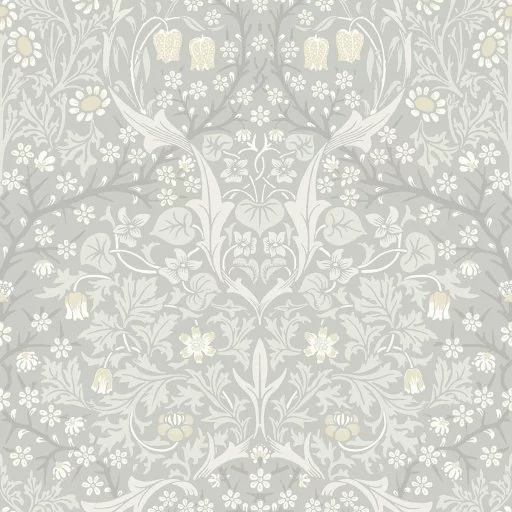 Ekskluzywna tapeta stanowiąca współczesną odsłonę popularnego w Wielkiej Brytanii w XIX wieku wzoru "Blackthorn". Ten kwitnący ciernisty typ krzewu ułożony jest w symetryczną elegancką kompozycję. Współczesna kolorystyka popieli i szarości przełamana jest porcelanową bielą i akcentami słonecznego beżu. Tapeta cechuje się gładkim, matowym wykończeniem.