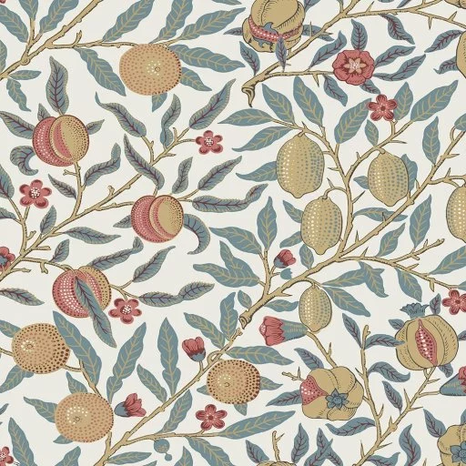 Ekskluzywna tapeta nawiązująca do twórczości projektanta z XIX wiecznej Wielkiej Brytanii. Motyw "Owoce lub granat" ujęty w nowej minimalistycznej formie stanowi nietuzinkową ozdobę wnętrz. Tapeta utrzymana w ciekawej kolorystyce jasnego szmaragdu, musztardy, ceglastej czerwieni i koralu. Barwy wzoru dodatkowo uwypukla jasne porcelanowe tło.