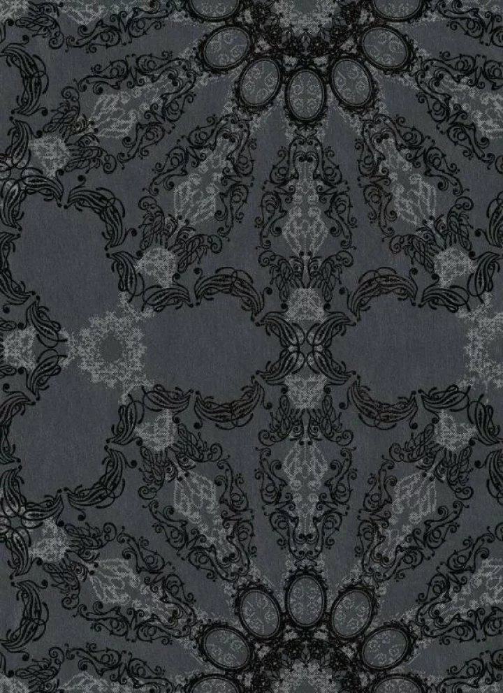 Elementy ozdobne na tej tapecie przypominają ręcznie robioną koronkę z połyskującymi kryształowymi drobinkami.