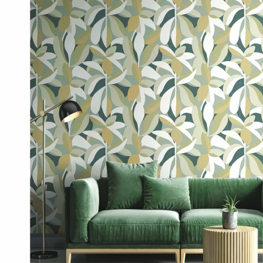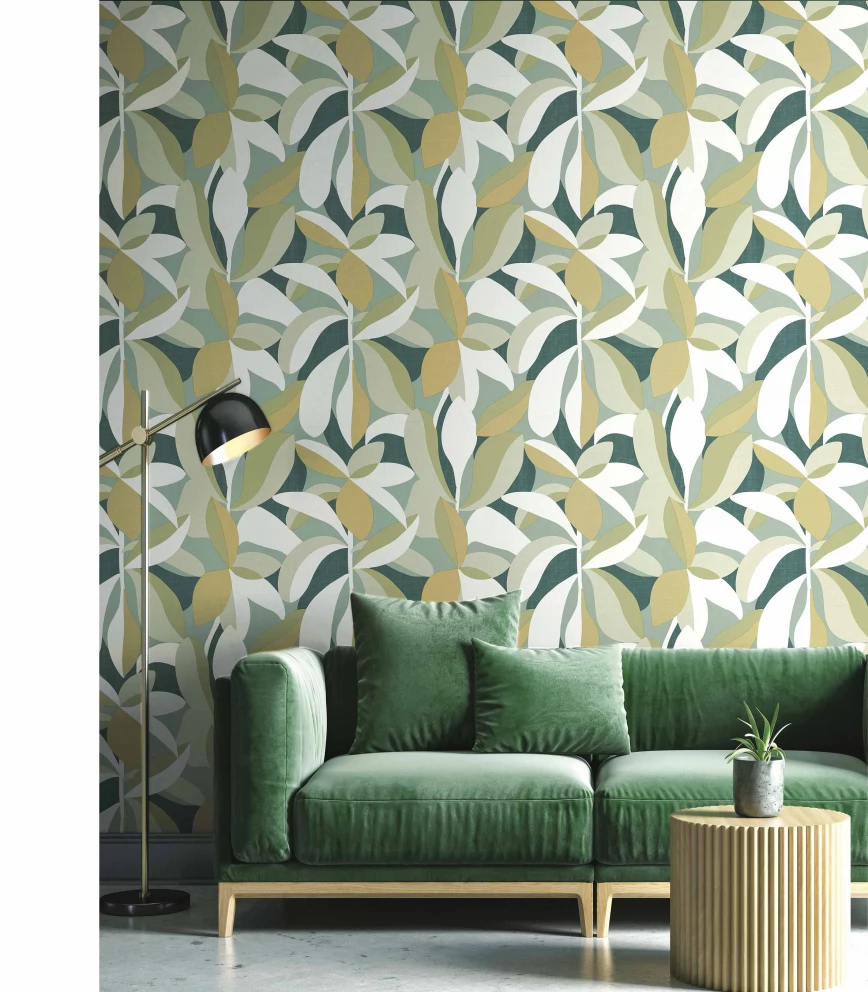 Tapeta o strukturze płótna. Żółte elementy mają metaliczny, złoty połysk.