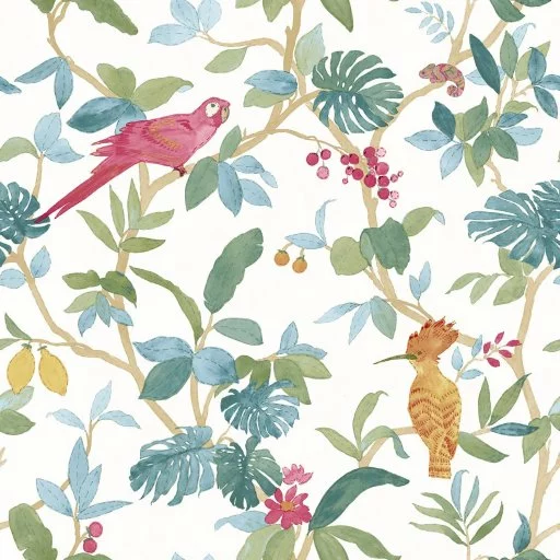 Tapeta z egzotycznym motywem roślinno-zwierzęcym, miejscami przepięknie połyskująca.
