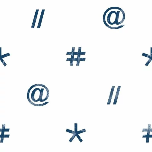 Matowa tapeta o gładkiej strukturze. Wzory umieszczone na niej takie jak hashtag, często używane są w mediach społecznościowych.