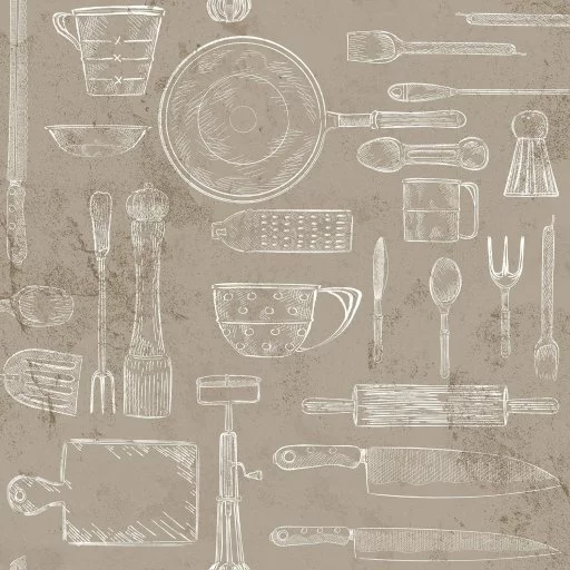 w kolorze brązu w odcieniu beżu z naszkicowanymi przyborami