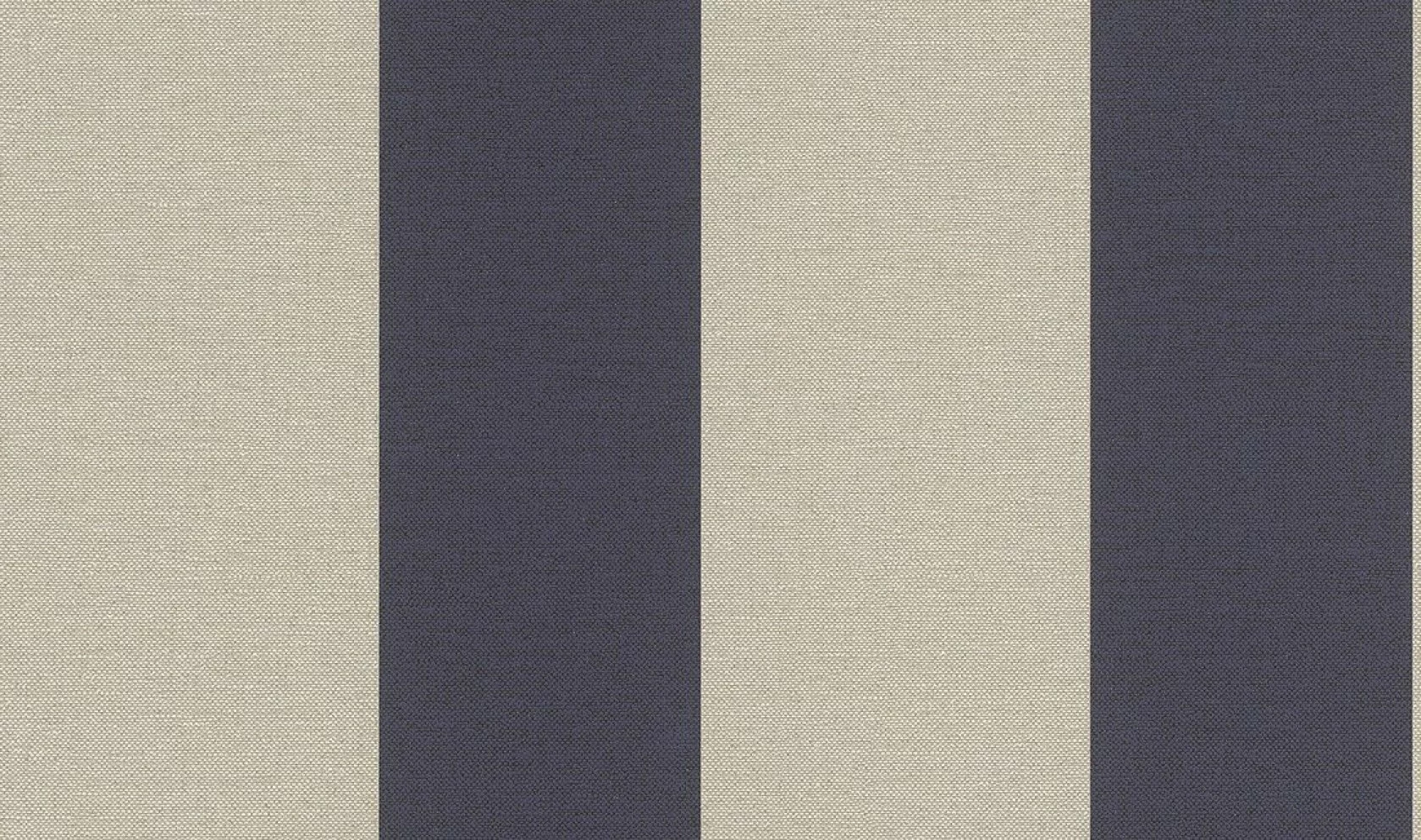 Tapeta w szerokie pionowe pasy. Posiada strukturę gęsto plecionej tkaniny. Odcienie beżu i atramentu.