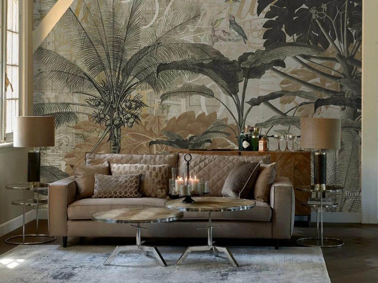 Panel dekoracyjny Fata Morgana z kolekcji Riviera Maison II. Mural składa się z 9 części tworzących obraz o wymiarach 2,8m wysokości i 4,5m szerokości. Materiał wykonania - winyl o strukturze płótna na flizelinie o gramaturze 360g/m2. Produkt na specjalne zamówienie bez możliwości zwrotu.